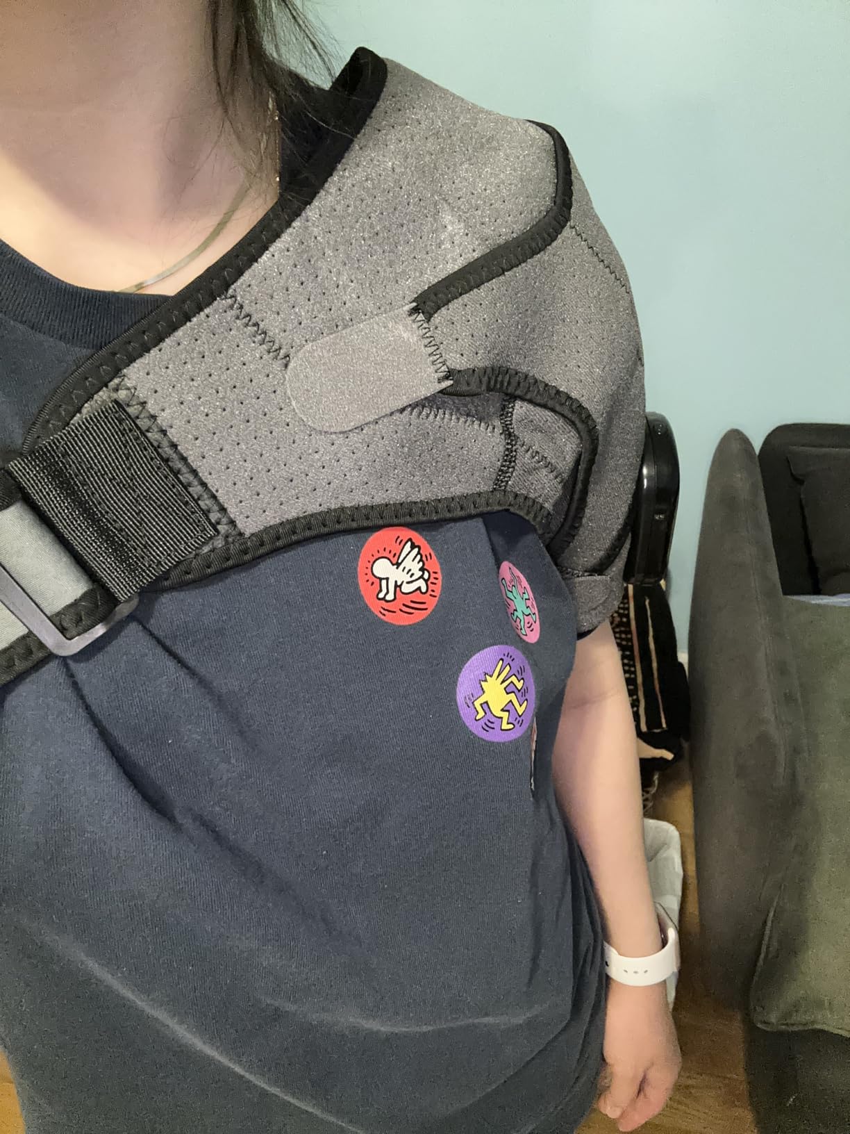 After a shoulder dislocation, the brace provides therapeutic warmth and stabilizing support to the healing joint. Heat helps alleviate pain and muscle guarding while increasing blood flow to promote tissue repair. The gentle compression also adds a sense of security, helping to minimize discomfort and prevent re-injury during recovery